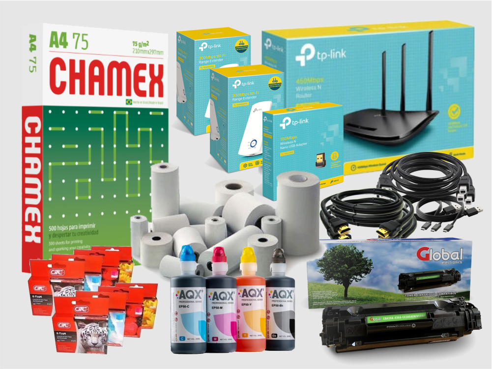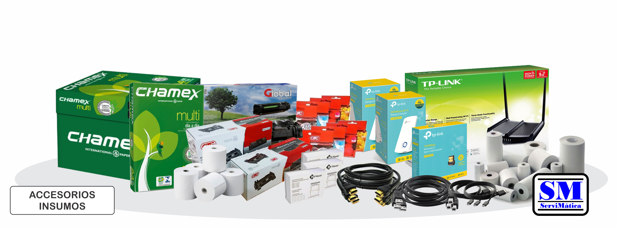 También contamos con periféricos como teclados, mouses, cámaras web. Todo orientado a la empresa, la oficina y el hogar.